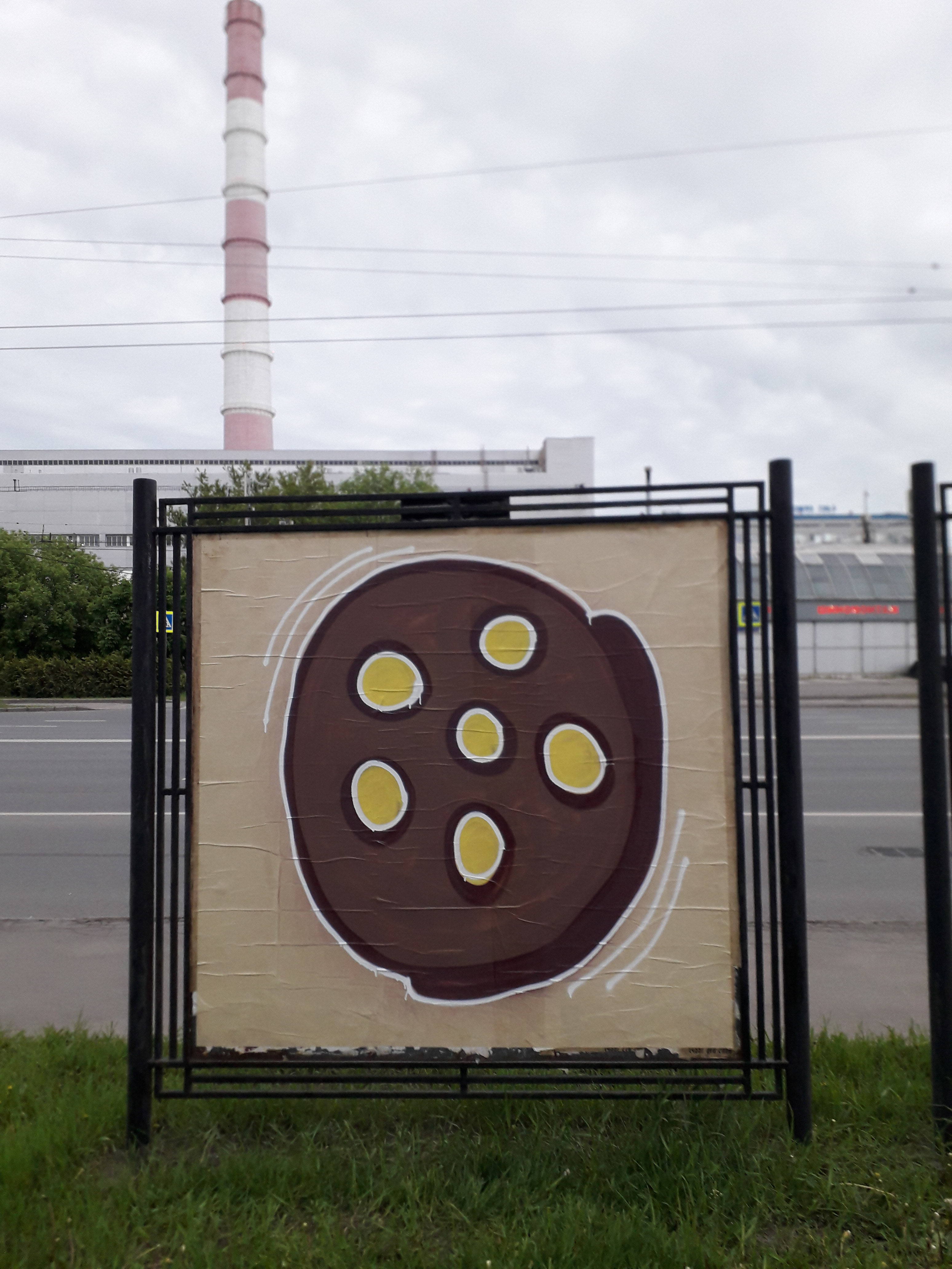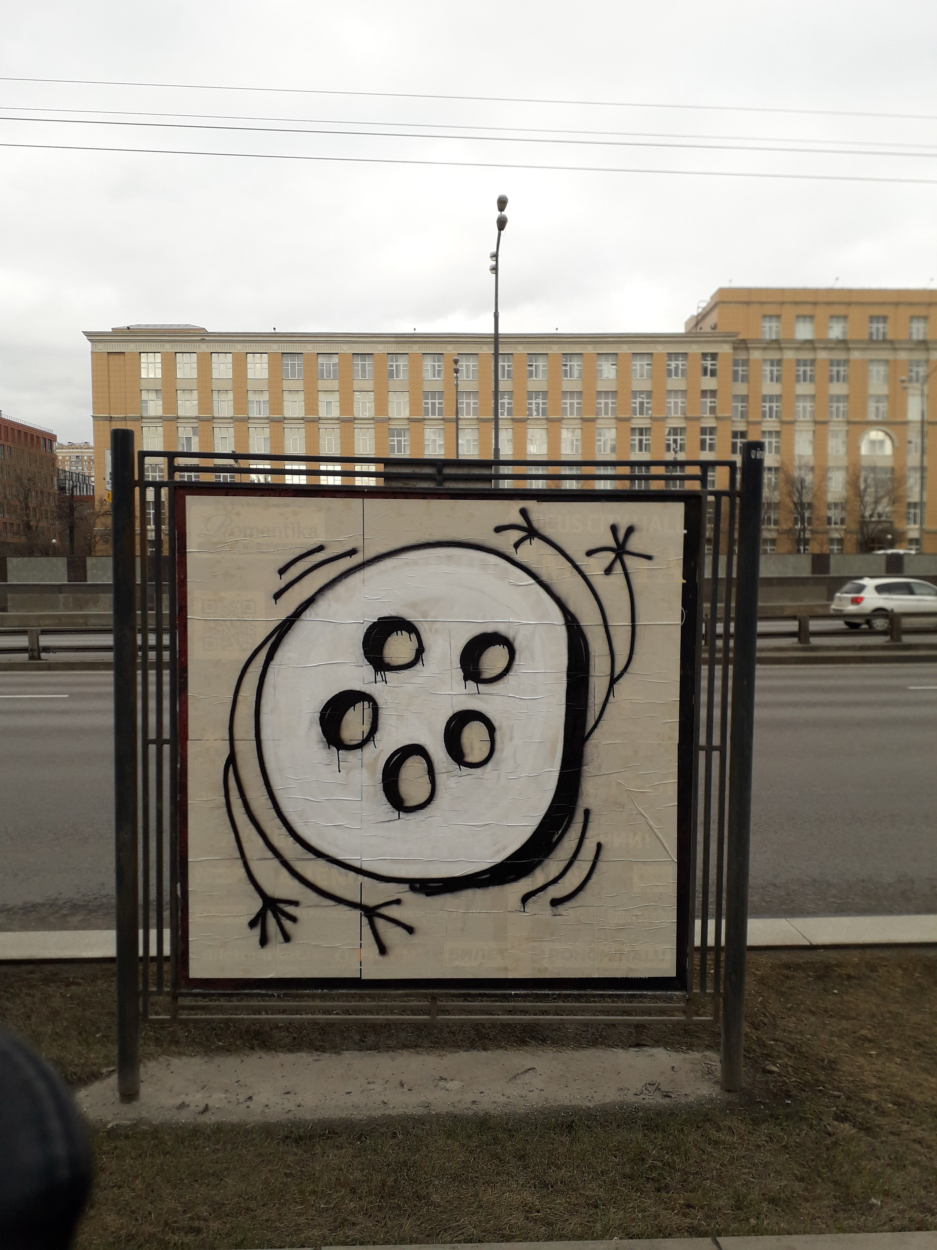 Так или иначе, пуговица является спутницей Кирилла Кто на протяжении многих лет – зачастую она появляется на улице как некое подобие throw-up (флопа), когда автор молниеносно быстро создаёт рисунок в людном месте. Пуговица – не герой и не персонаж, она маркер присутствия художника здесь и сейчас.