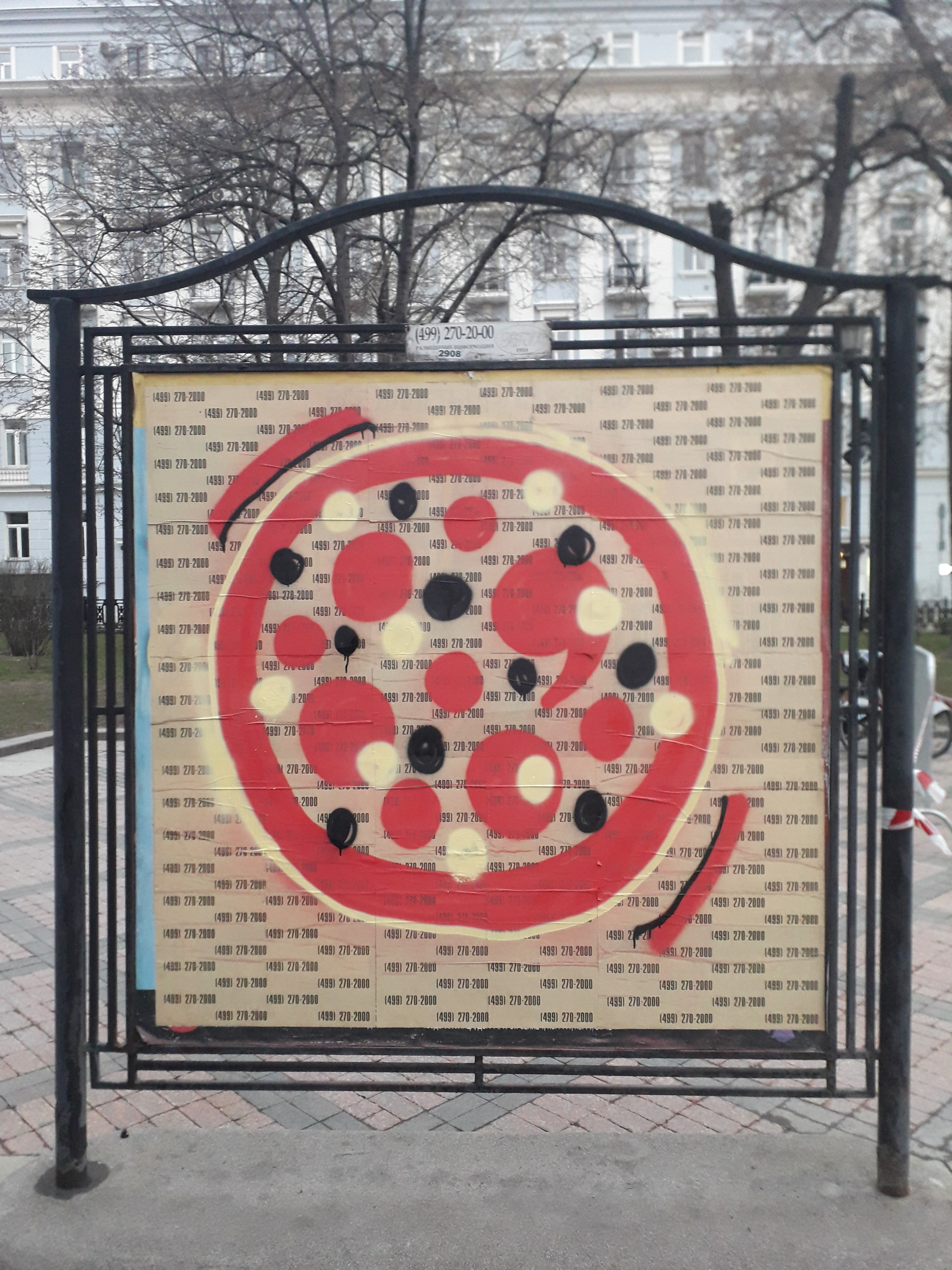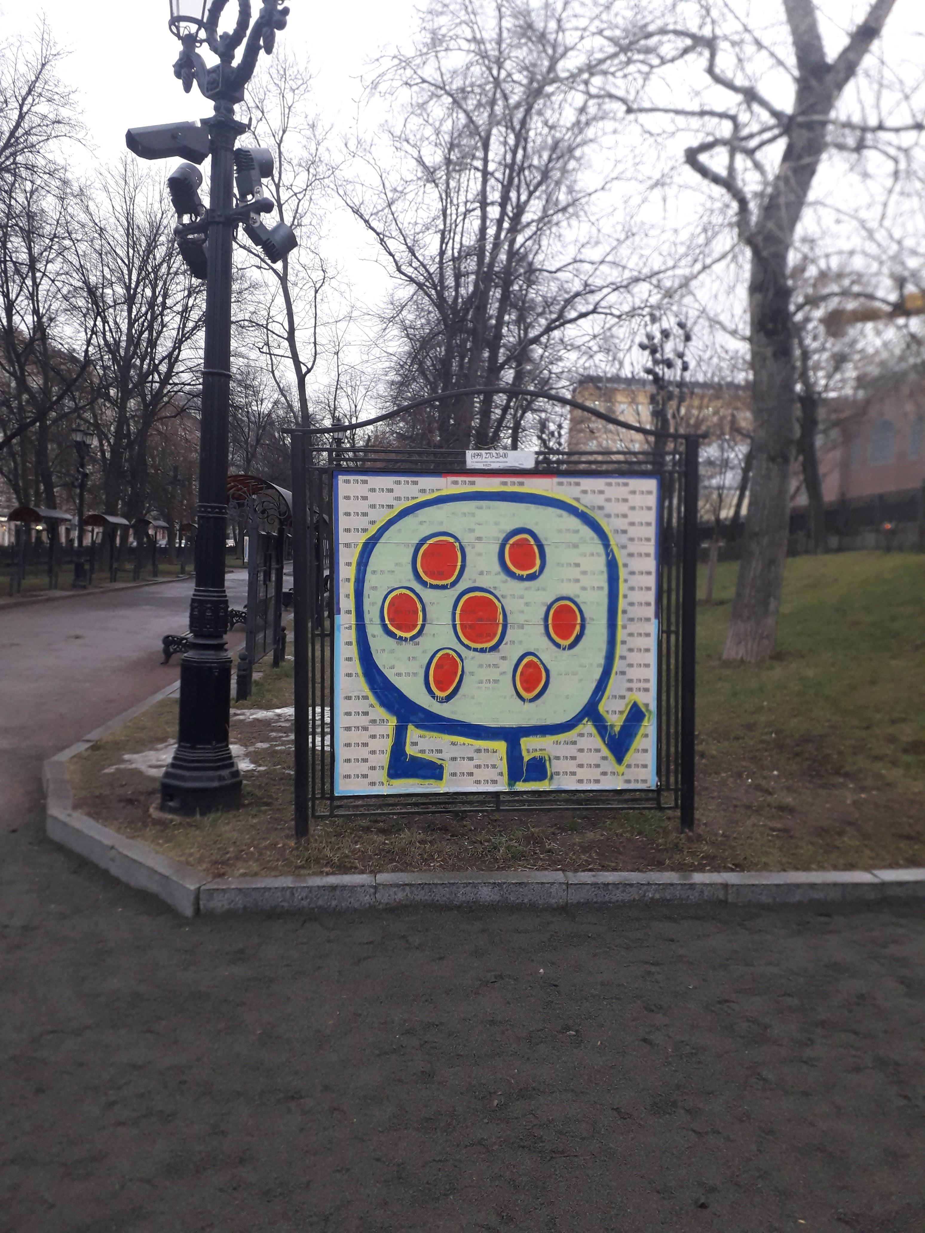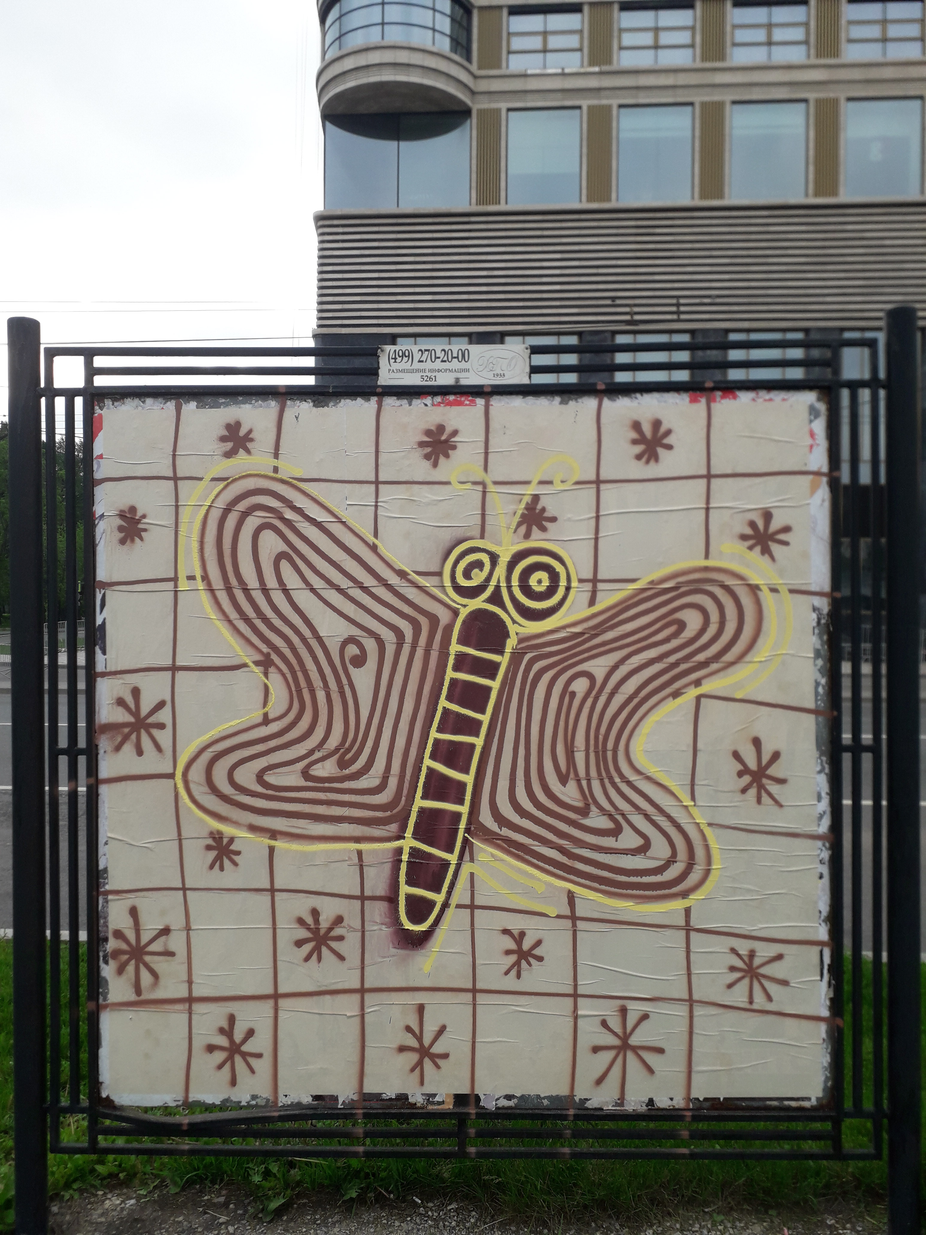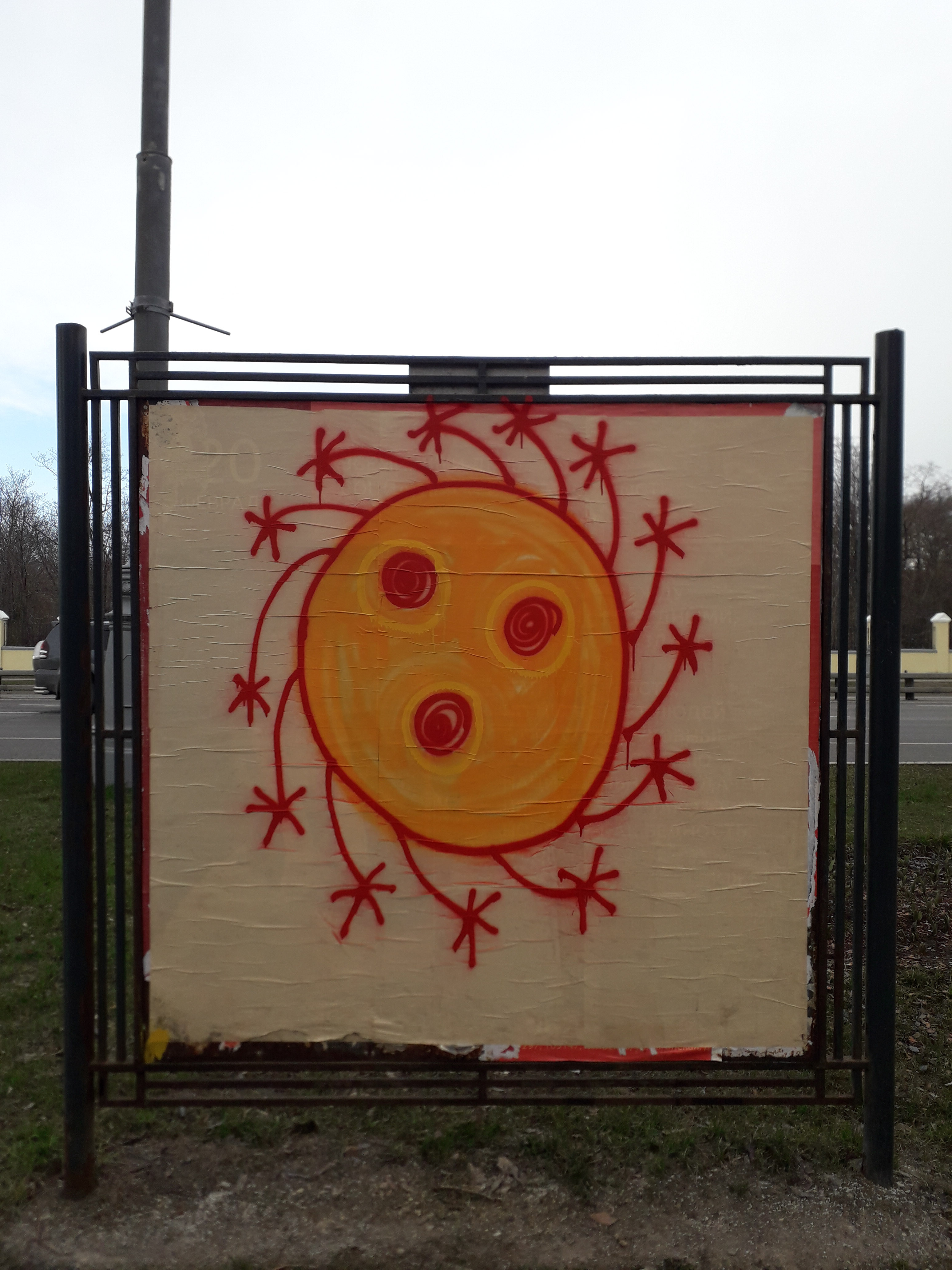 Наиболее часто используемый Кириллом Кто символ – это рыбка (или ракета). По своему формообразованию и природе она ближе всего к тегу, поэтому автор использует ее для маркировки городского пространства. Ракета (или рыбка) стремительно летит вдоль водосточных труб, выныривает из пространства улицы, сплошь забитого тегами граффити-райтеров, устремляется ввысь.